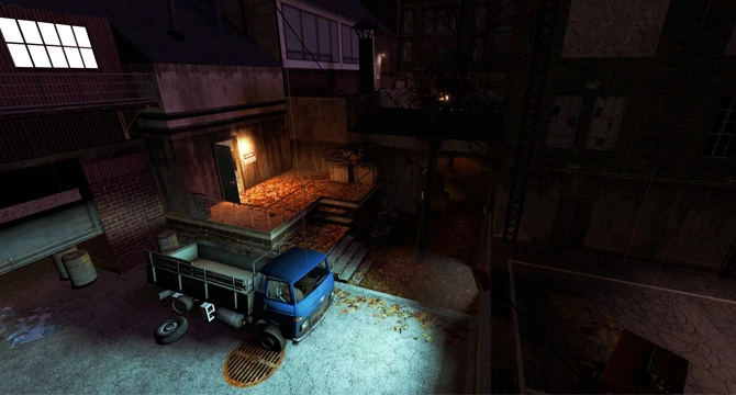 Town (titled zps_town in the game's files) is a medium-large square shaped survival map set in a small, cobble stone road town during a dark night. The map consists of several key locations and buildings which contain most of the item spawns. Many of the buildings can be entered by the player and only a few of the buildings are purely aesthetic, unlike many maps. The main locations on this map where players tend to travel to are the diner, playground, apartment buildings (two of them), elementary school, garage, alley, hotel, underground passage, and the streets connecting the areas.
